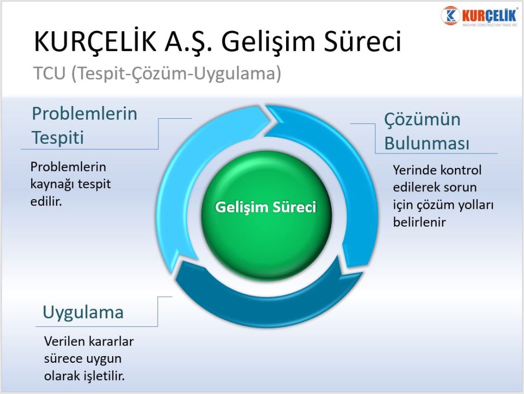 KURÇELİK A.Ş., Sunta – MDF – OSB, Demir Çelik, Otomotiv ve Endüstriyel Bıçak sektörlerinde faaliyet gösteren, bu sektörlere yönelik silo, taşıyıcı sistemler, endüstriyel bıçaklar, kırıcılar ve flakerlar gibi endüstriyel çözümler üreten bir şirkettir. Gelişim sürecimiz, sektördeki değişimleri yakından takip ederek, ortaya çıkan problemlere yenilikçi çözümler bulmayı ve bu çözümleri uygulamaya almayı içerir. Aşağıda, gelişim sürecimizi “Problem Tespiti“, “Çözüm Geliştirme” ve “Uygulama” olmak üzere üç ana başlık altında detaylandırıyoruz.